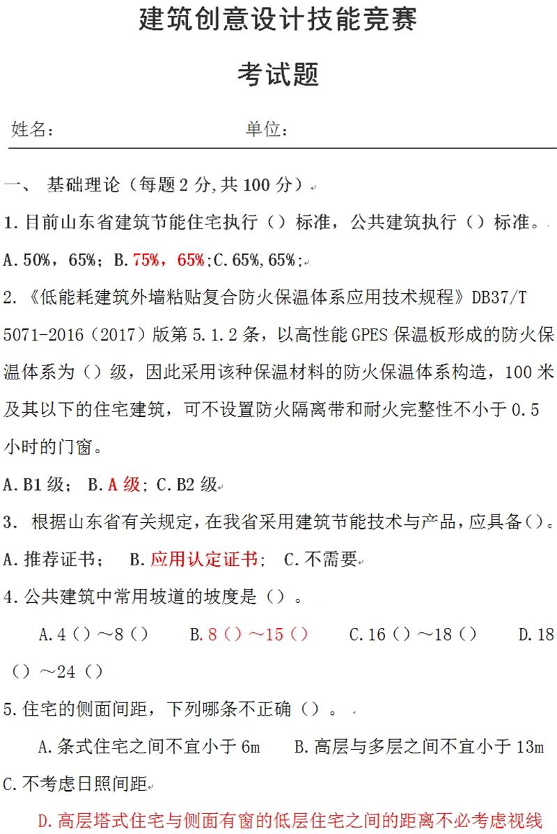基礎(chǔ)理論:建筑創(chuàng)意設(shè)計(jì)技能競(jìng)賽考試題
