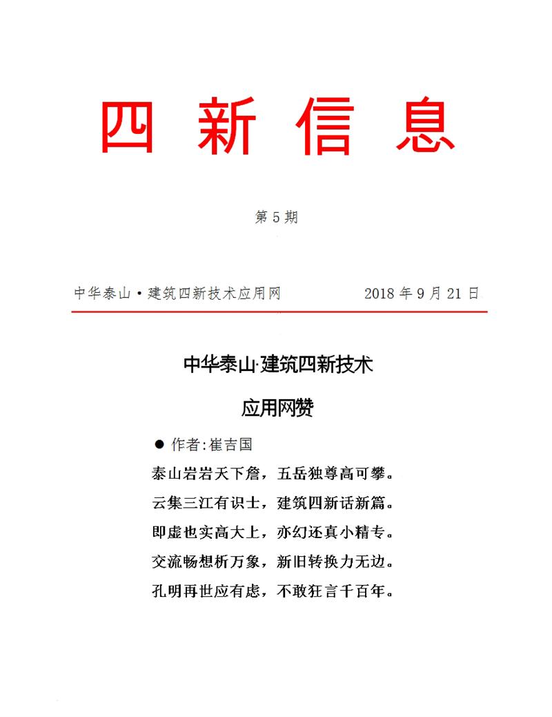 四新信息:中華泰山*建筑四新技術(shù)應用網(wǎng)贊
